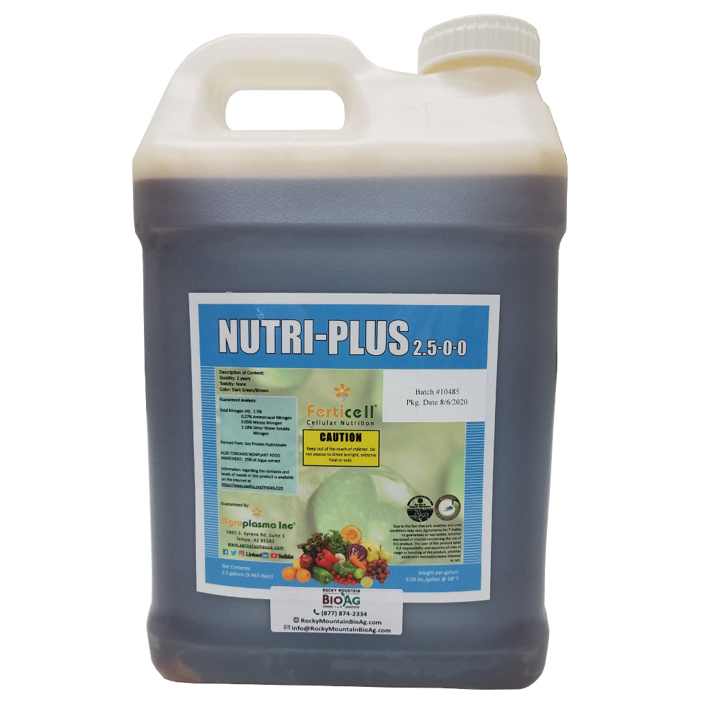Additionally, Nutri-Plus 2.5-0-0 Organic Fertilizer is rich in nitrogen, an essential nutrient for efficient photosynthesis. Without nitrogen, plants cannot convert sunlight into important food they need to thrive. Nitrogen works harmoniously with the amino acids and algae present in this solution to give your crops a royal treatment.